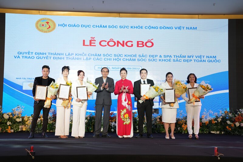Vào ngày 25/09 vừa qua, tại CTM Palace số 131 Nguyễn Phong Sắc, Dịch Vọng Hậu, Cầu Giấy, Hà Nội đã diễn ra buổi lễ công bố Quyết định thành lập Khối chăm sóc sức khoẻ sắc đẹp & spa Thẩm mỹ Việt Nam và trao quyết định các chi hội chăm sóc sức khoẻ sắc đẹp toàn quốc. Theo đó, Khối sắc đẹp và spa thẩm mỹ – Vchea chính thức nhận quyết định thành lập khối với tên gọi đầy đủ là Khối chăm sóc sức khoẻ sắc đẹp và spa thẩm mỹ Việt Nam.