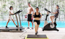 Bình Minh cùng vợ và hai con gái chạy bộ, tập tạ, aerobic... mỗi...
