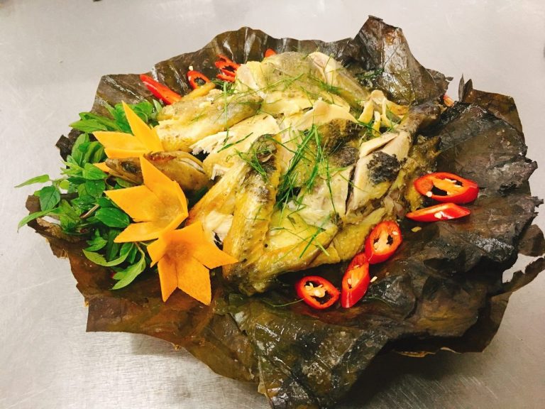 Thưởng thức ngay món Gà hấp lá sen thơm ngon khó cưỡng có tại Ẩm thực Vân Hồ